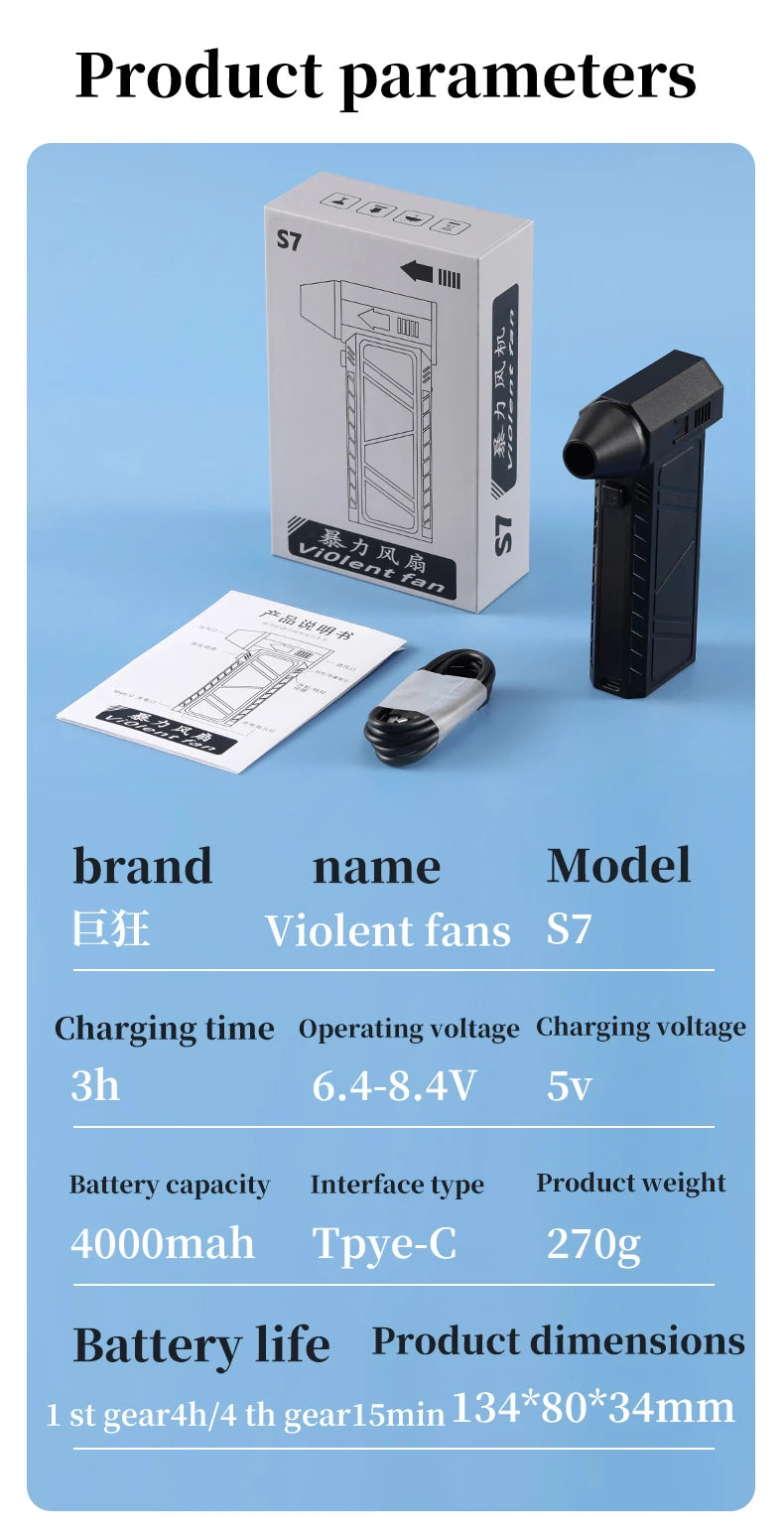 This is not just an ordinary fan. The Turbo Jet Fan S7 is a high-power mini air blower that unleashes bursts of air so strong, it feels like holding a compact hurricane.